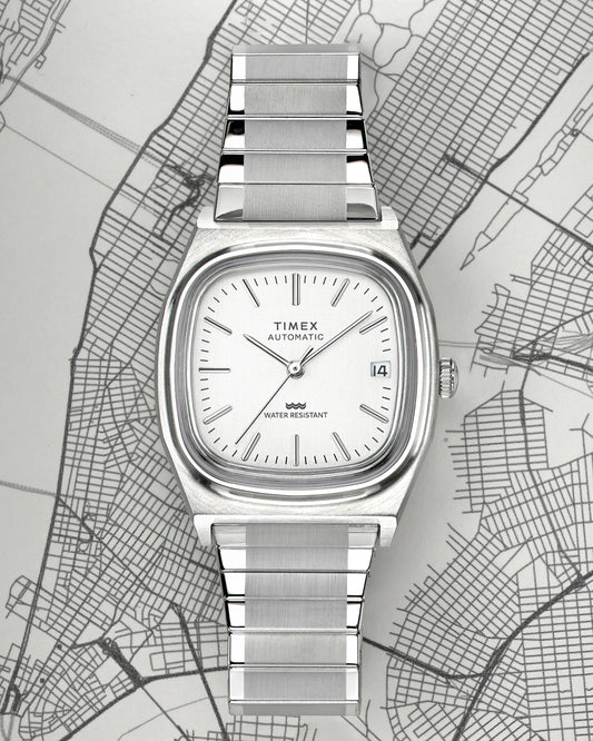 TIMEX® AUTOMATIC 1983 E LINE REISSUE 34MM STAINLESS STEEL EXPANSION BAND WATCH