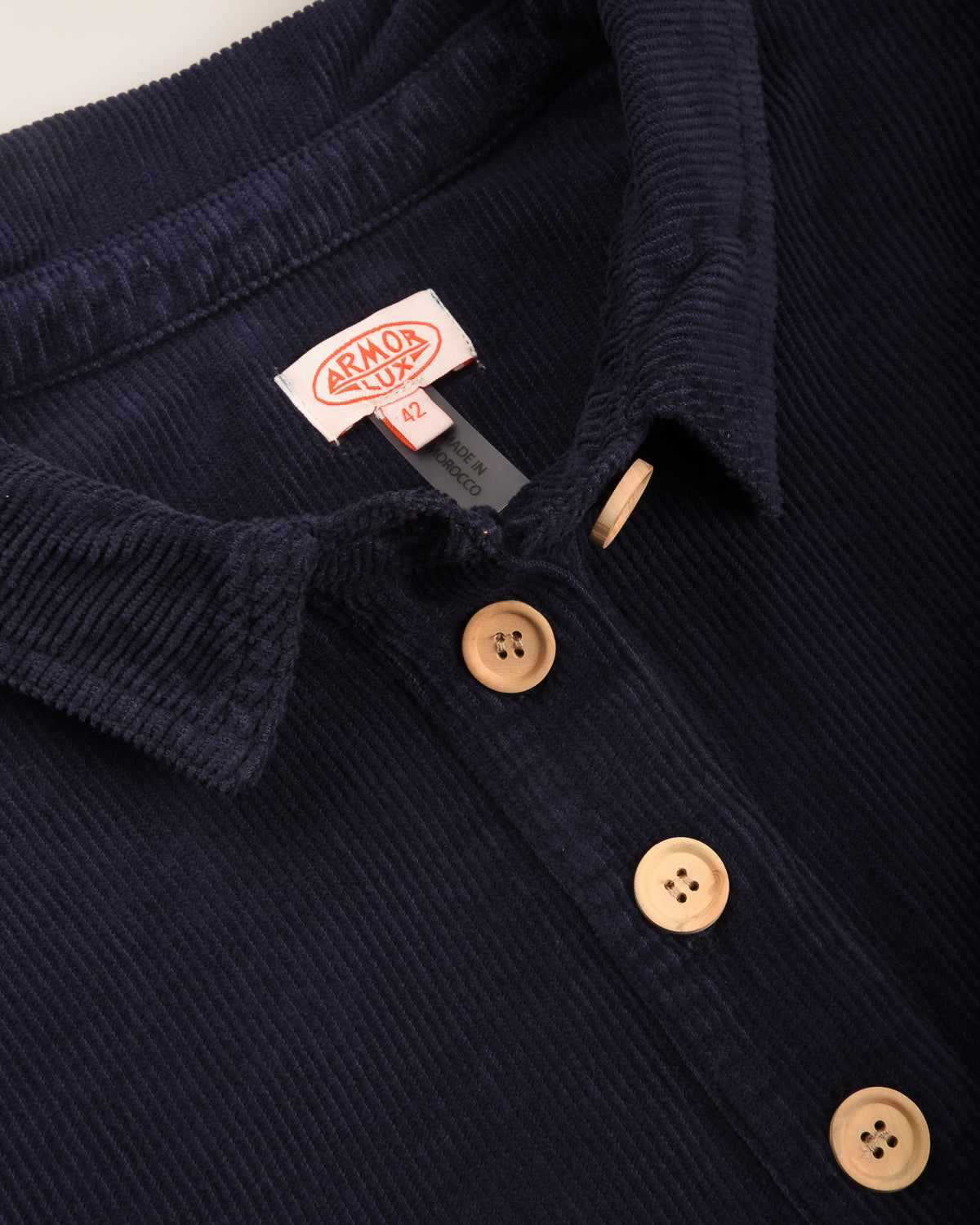 Inspired by the authentic Breton jacket, this dress revisits a classic seafaring garment with a feminine, modern twist. Using a corduroy cotton fabric and wooden buttons as per the jackets, it features two front pockets and a straight cut. The length for a size 1 is 94 cm and the length varies by 1 cm per size.