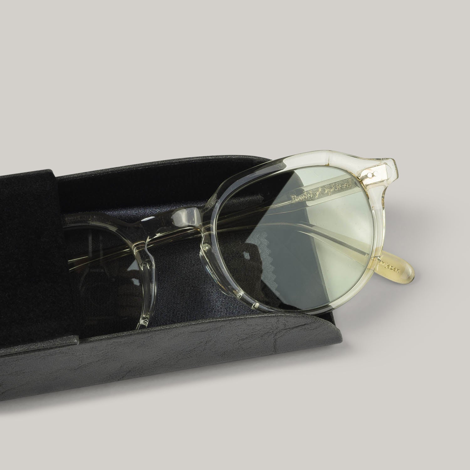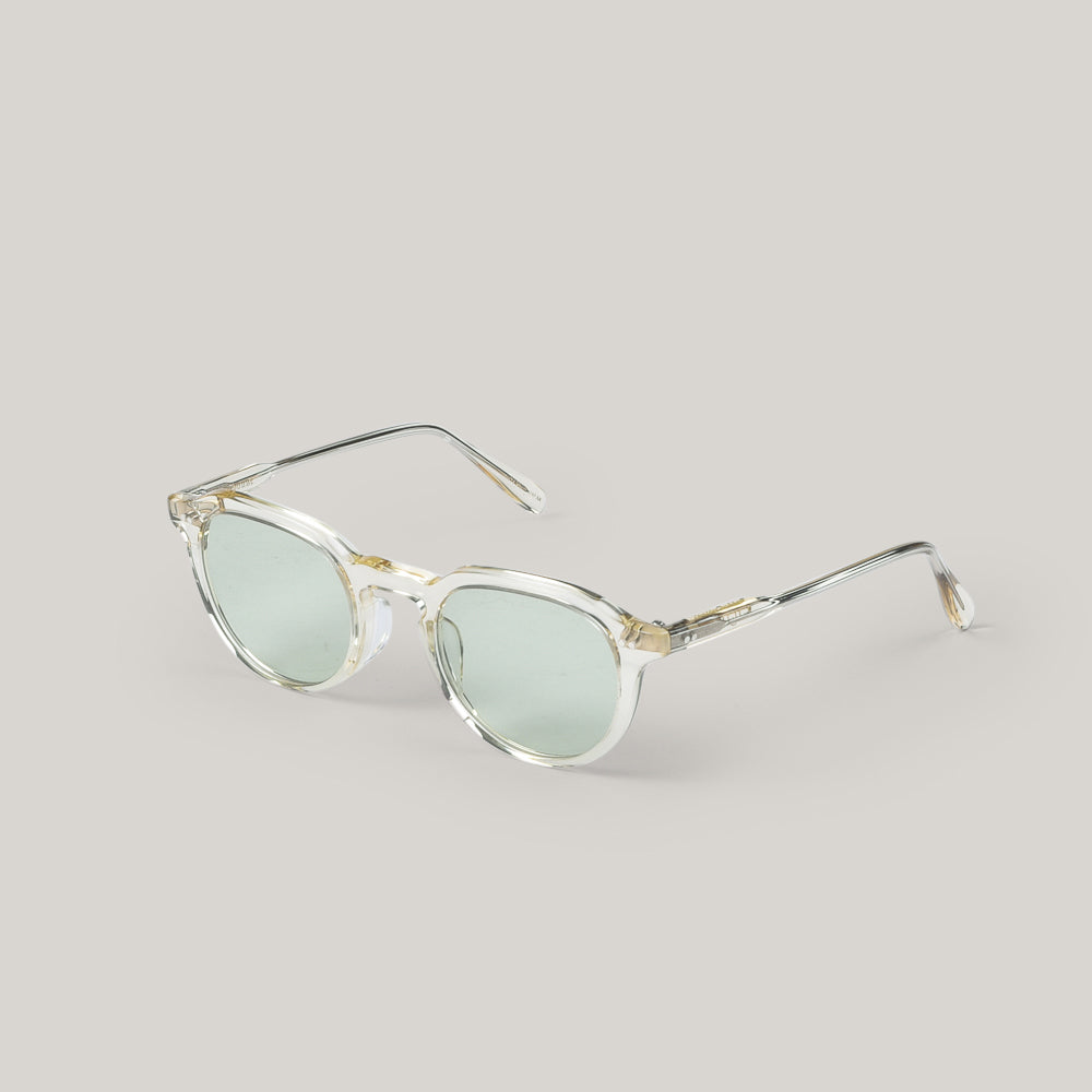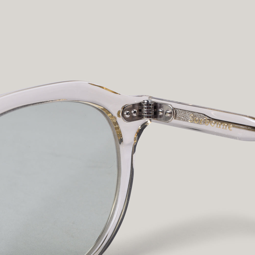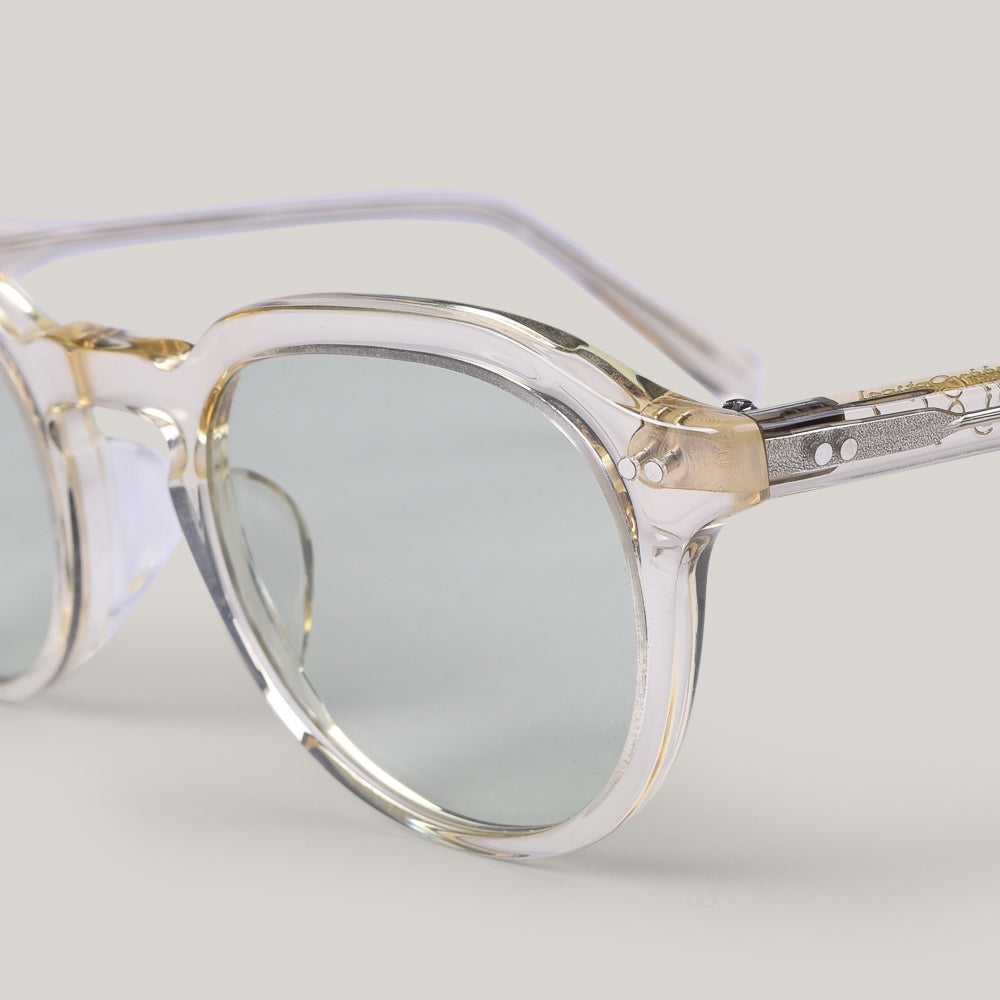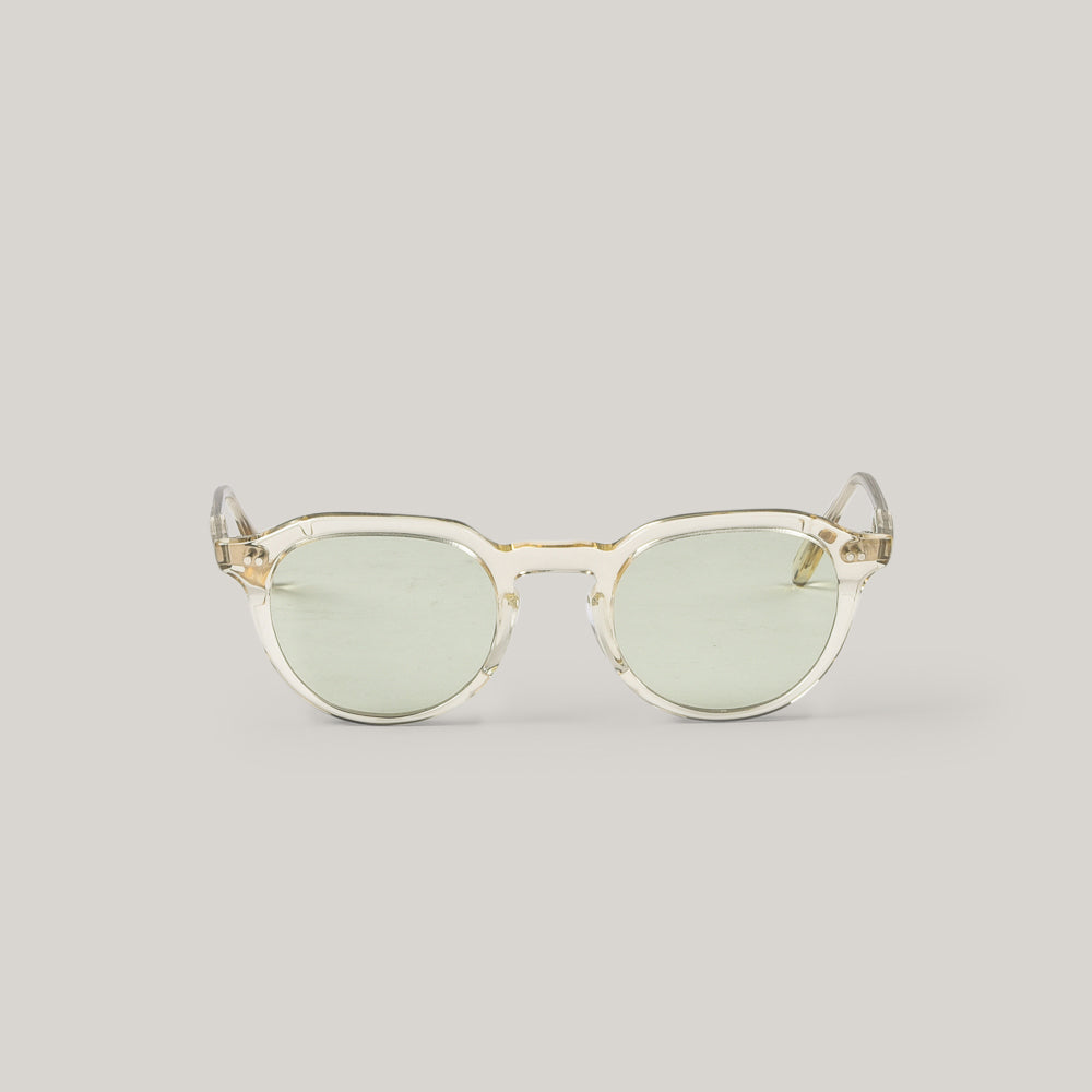 SUNY stands for State University of New York and refers to a huge State university organisation with 64 campuses throughout NY. The design is based on the 1960's Wellington type which incorporates the keyhole bridge. This version is the large size, made in a translucent ecru frame with a light sage lens.
