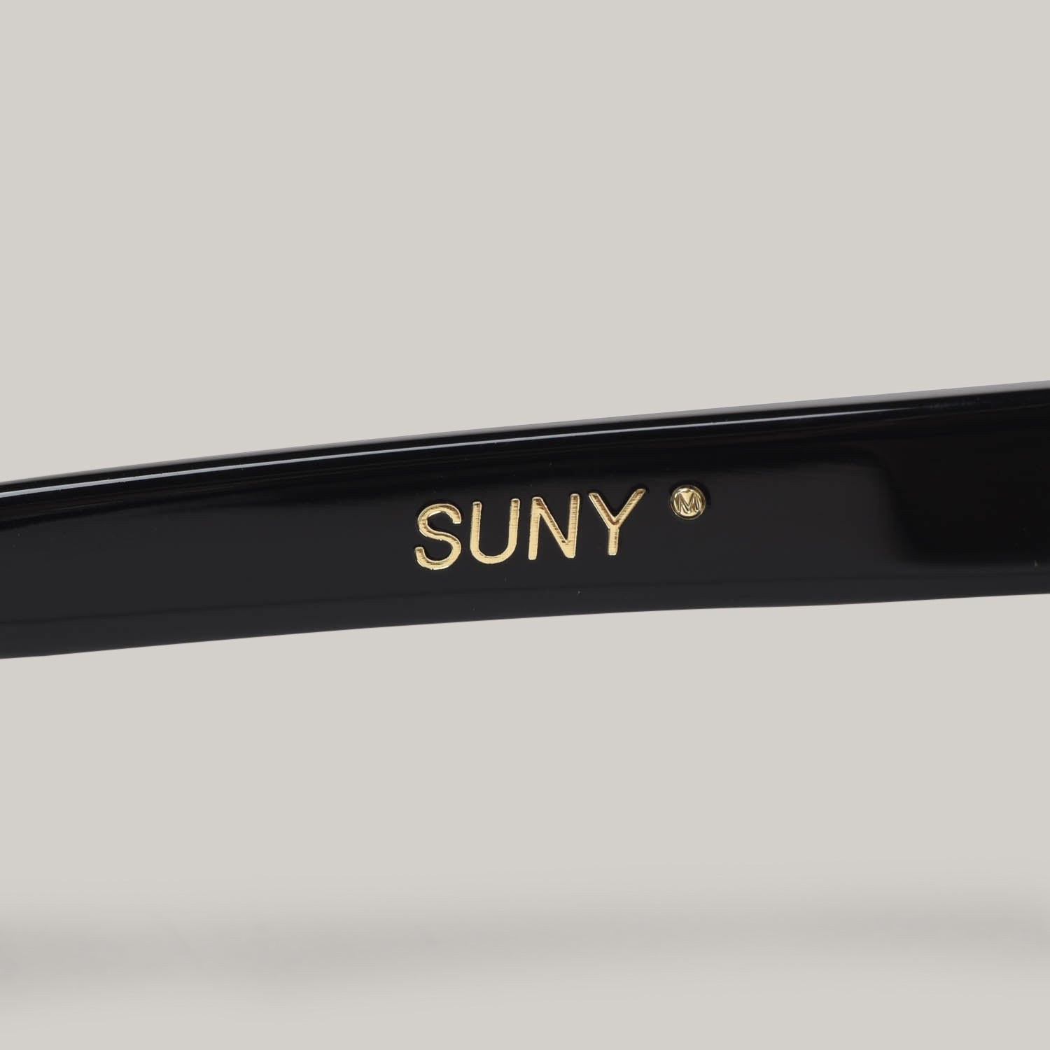 SUNY stands for State University of New York and refers to a huge State university organisation with 64 campuses throughout NY. The design is based on the 1960's Wellington type which incorporates the keyhole bridge. This version is the Large size, made in a half black frame.