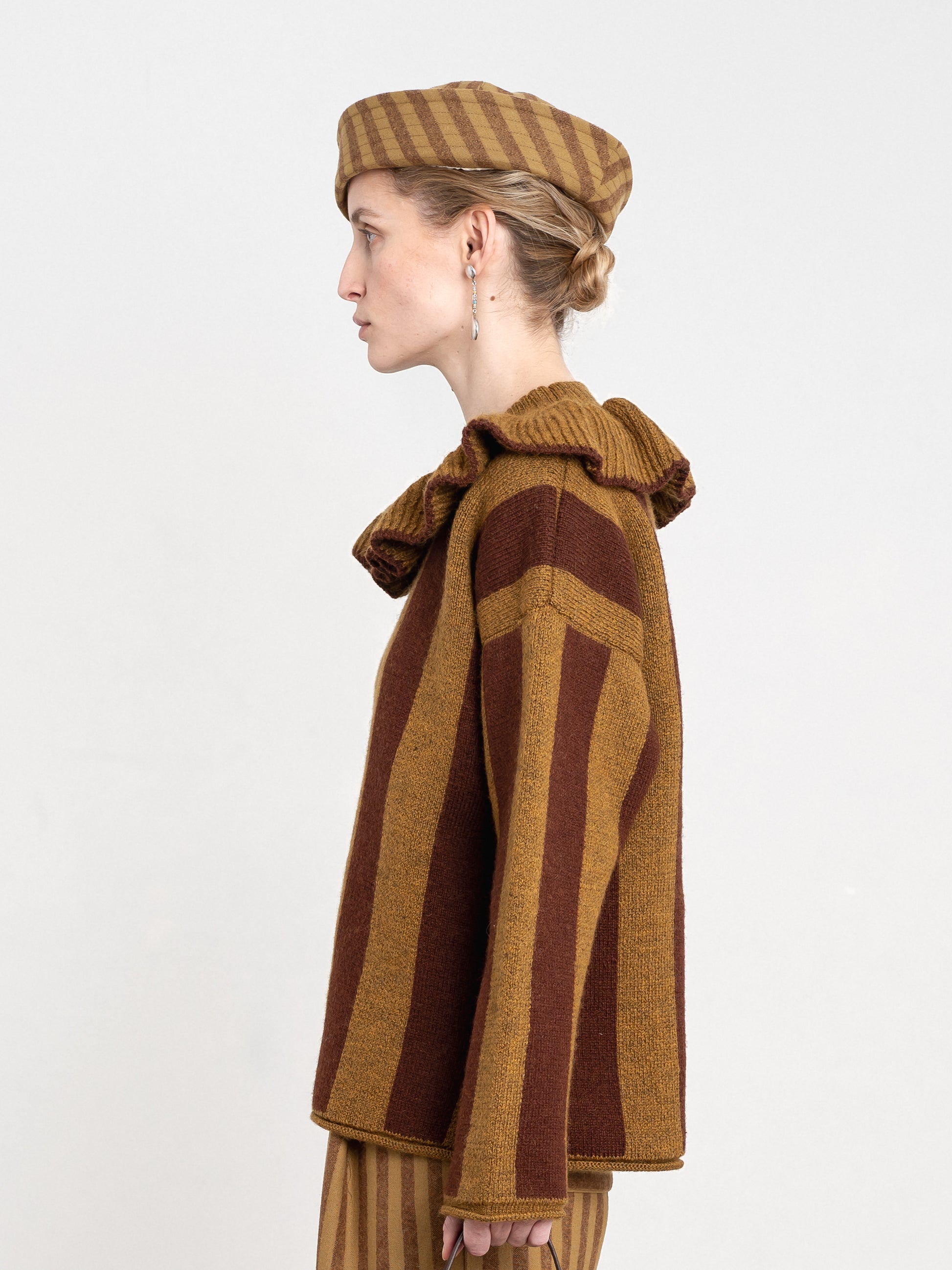 A classic sailor’s hat crafted in Portuguese striped wool. A fun accessory to brighten any ensemble.
