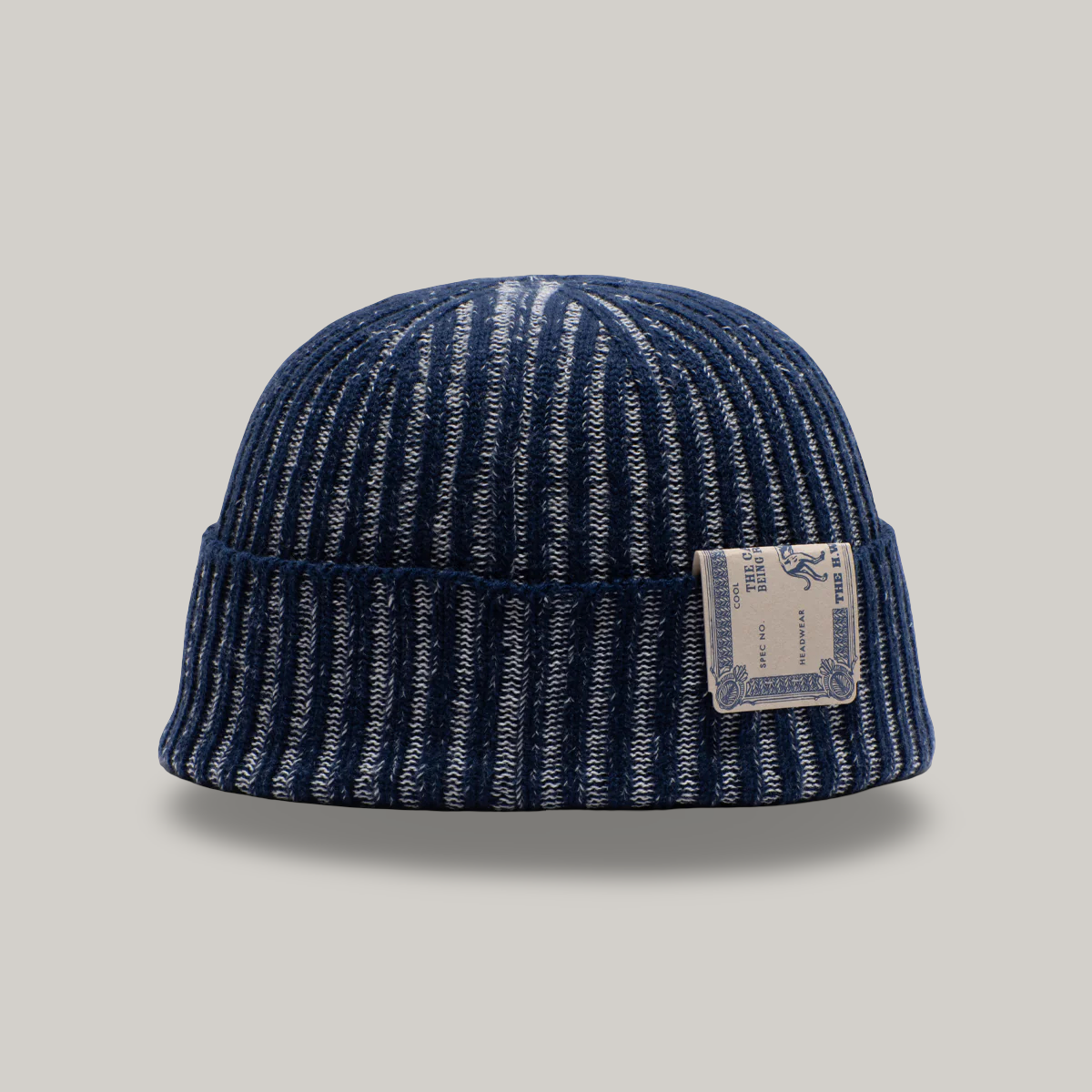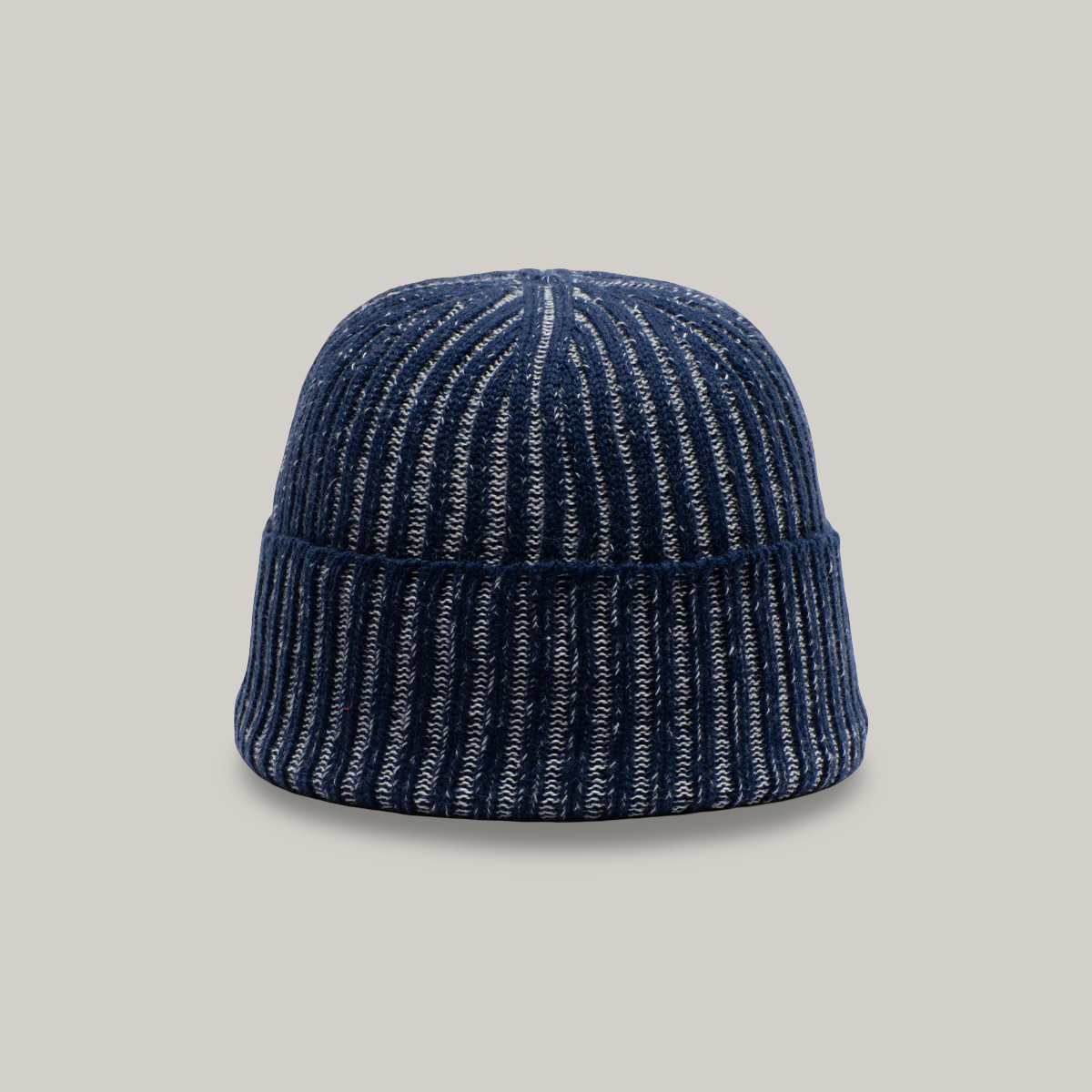 This is an unusual knit hat with strong elasticity and when worn, the ribs open to reveal the different colored yarn inside.