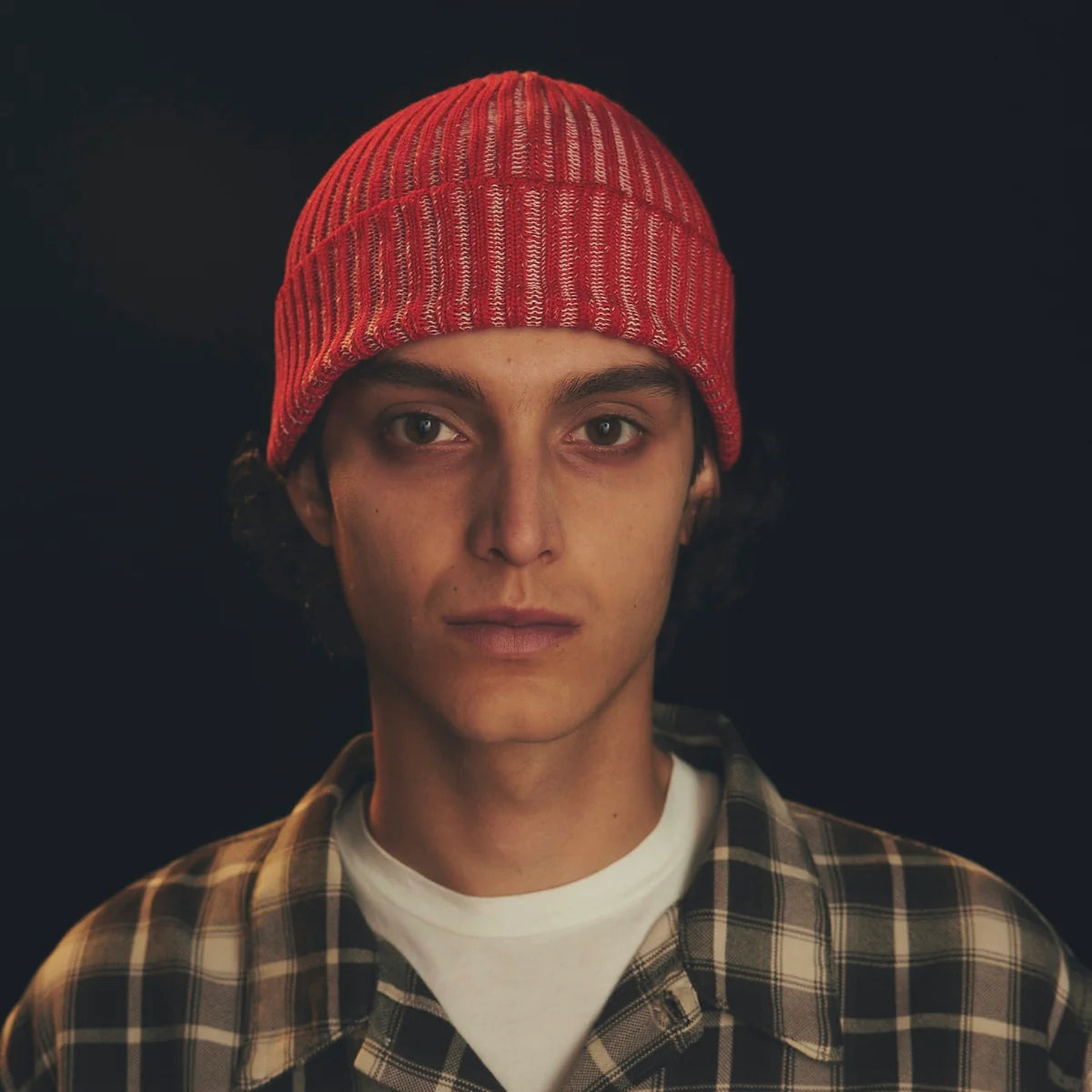 This is an unusual knit hat with strong elasticity and when worn, the ribs open to reveal the different colored yarn inside.