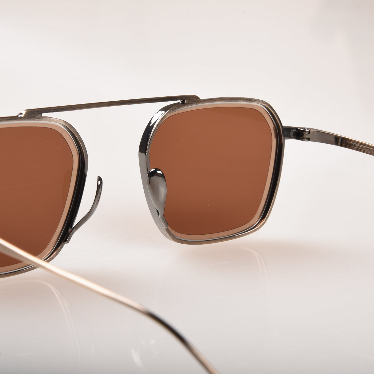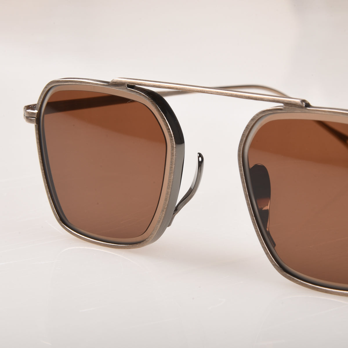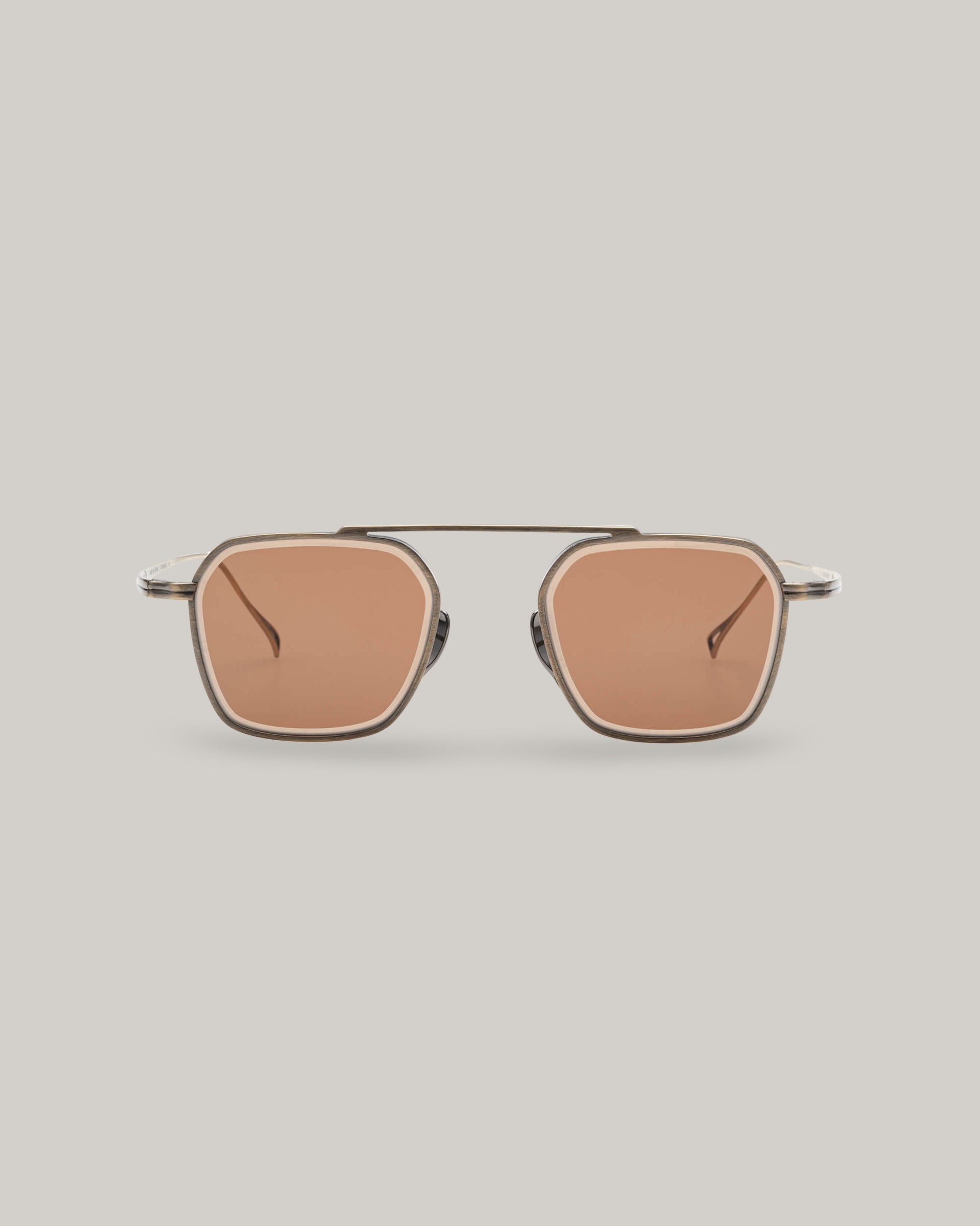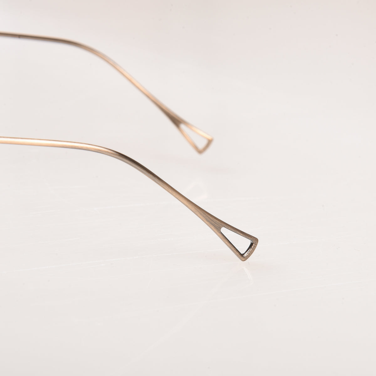 Seemingly simple and chic yet painstakingly time-consuming to make; these glasses have the signature looped detail on the arms and titanium nose pads, rendering each part light, strong and incredibly comfortable. Details also include that statement cross bar up top, oft copied and rarely nailed like this. The colour is aged gold.