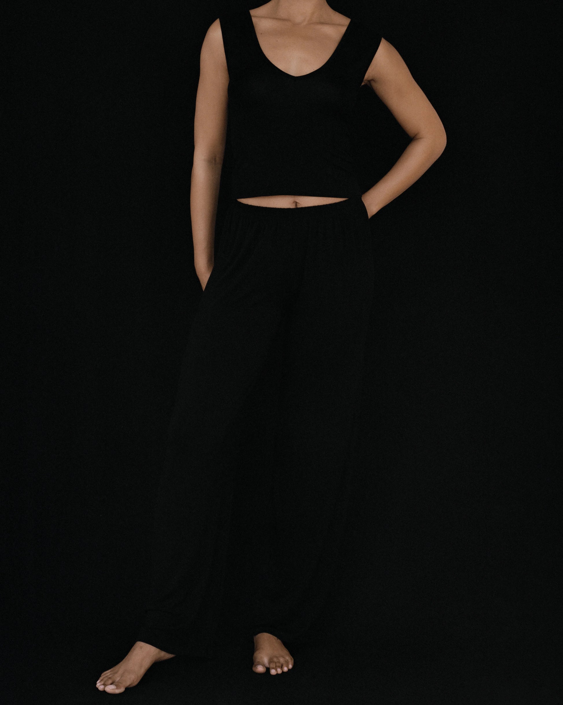 Kye's perspective on a pyjama pant. The Recline Pant is soft and slouchy. Made from a luxuriously soft, environmentally-conscious bamboo. Named for Mies Van Der Rohe’s Reclining Chair series as an ode to moments of calm in your everyday.