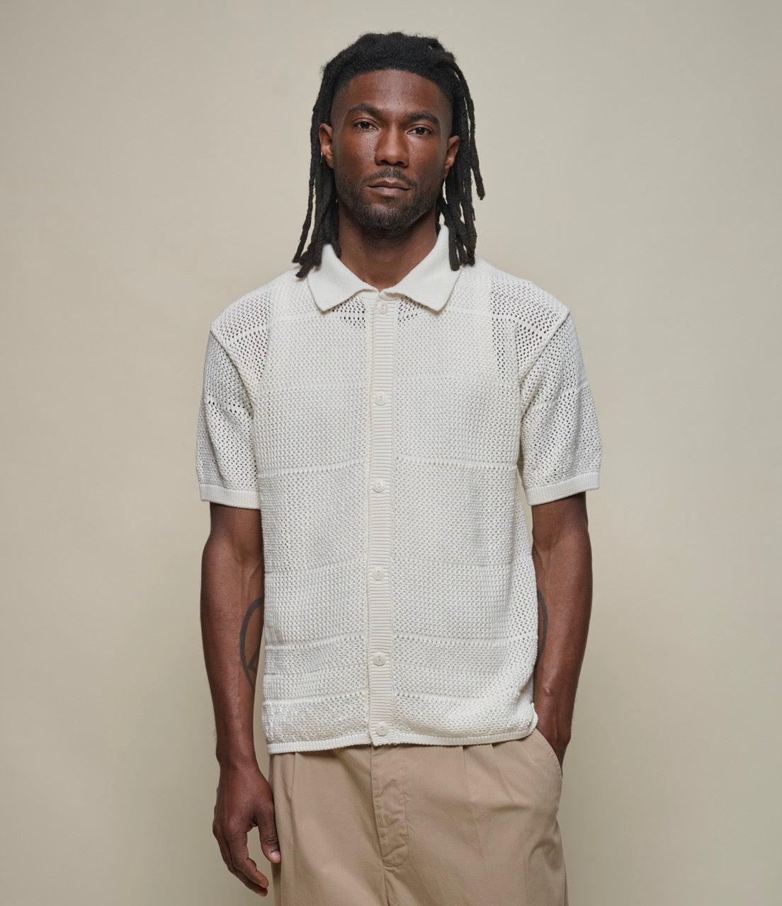 MERZ B. SCHWANEN CROCHET KNIT SHIRT - NATURE