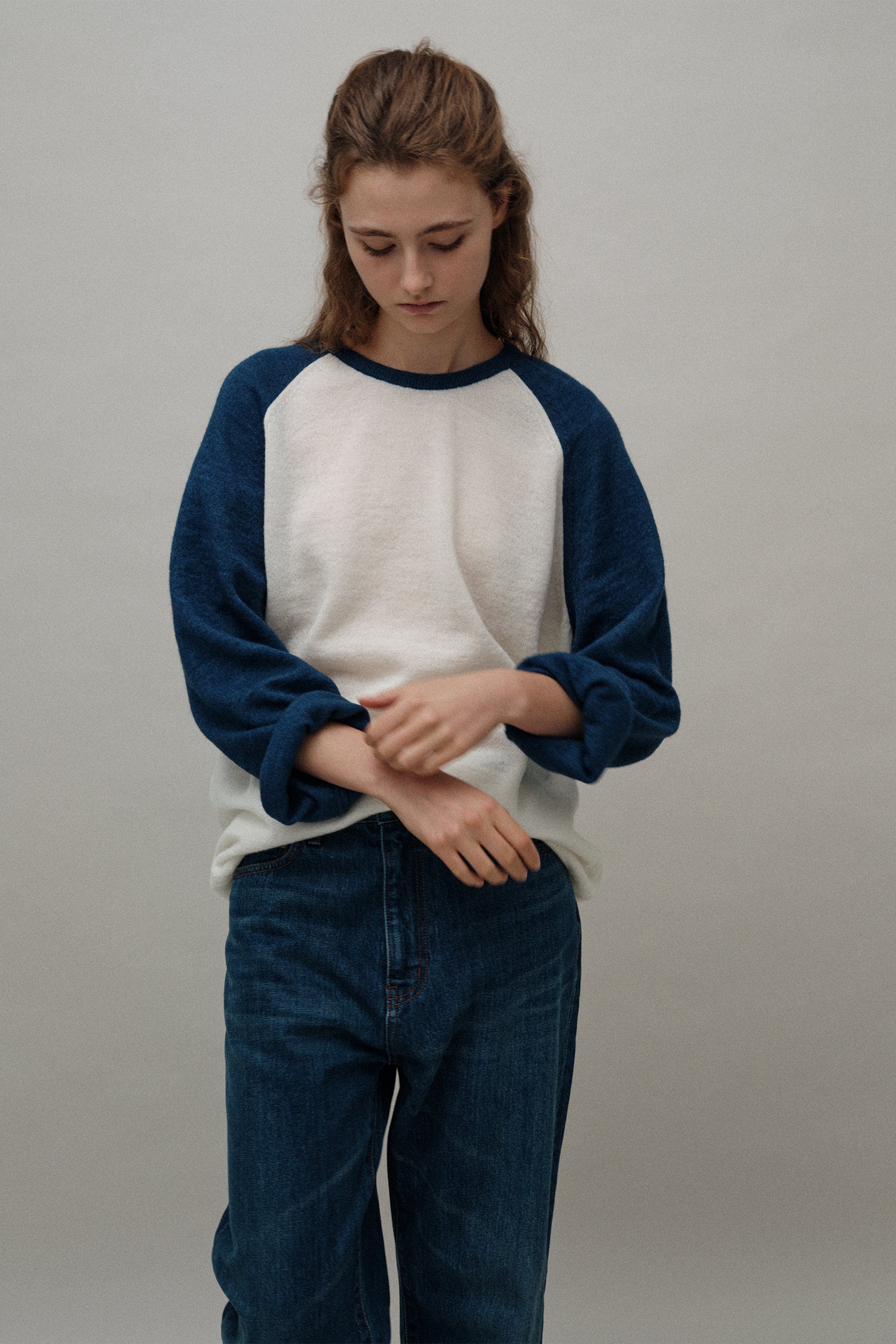 NOTHING WRITTEN PALIE RAGLAN PULLOVER - IVORY/ BLUE
