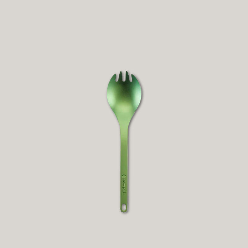 The humble magnificent spork, the one eating iron you want to be armed with on any expedition. This one is made in titanium so it is light, strong and robust. Furthermore it has been anodized in green for your pleasure.