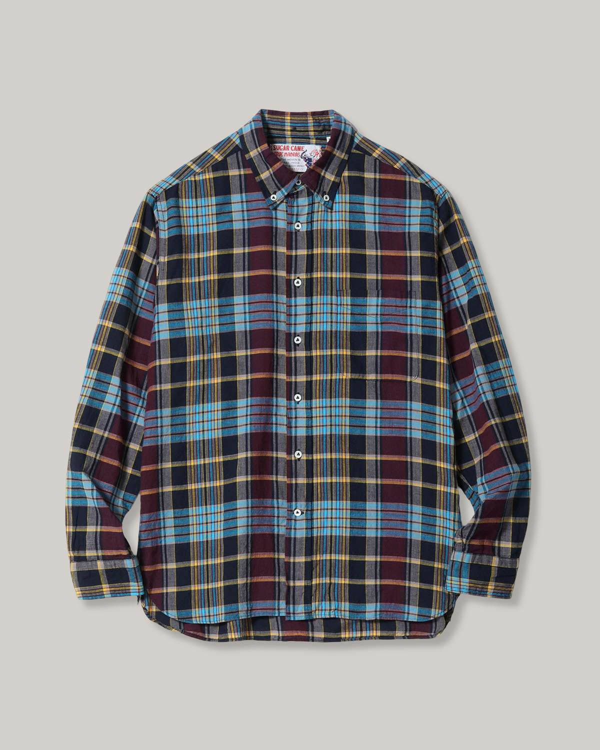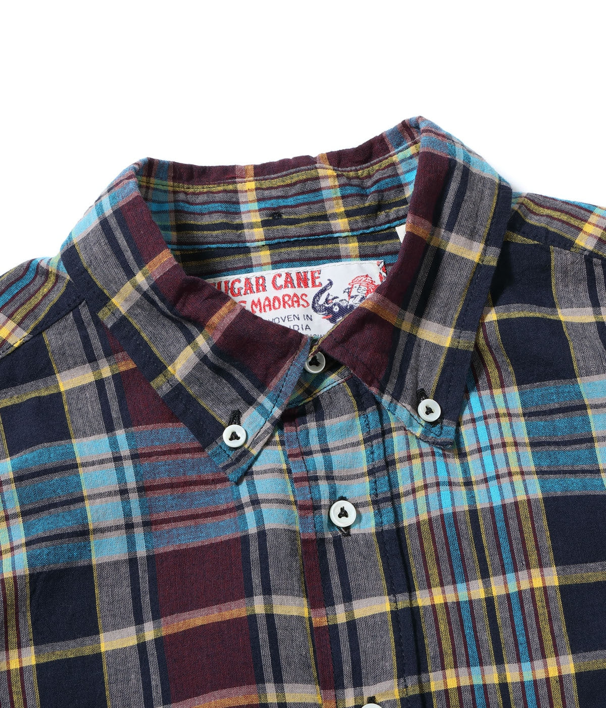 SUGAR CANE INDIA MADRAS CHECK BUTTON DOWN SHIRT - BLACK